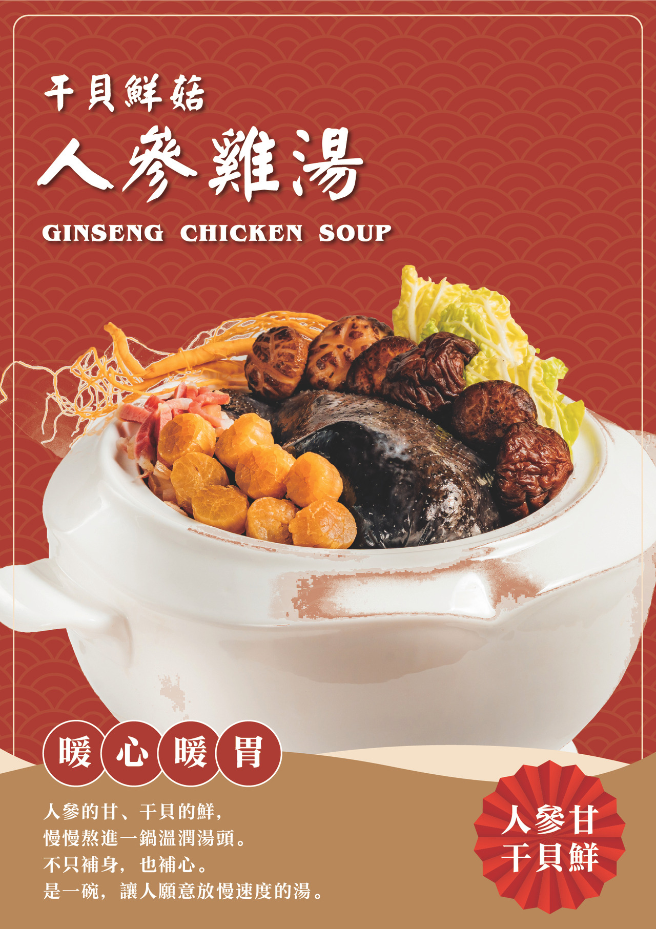 干貝鮮菇|人參雞湯